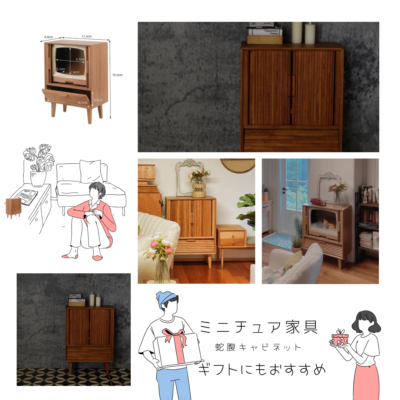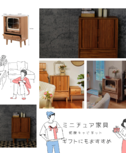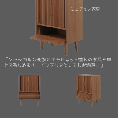 チェリー材 × ブナ材を使用したハンドメイドのミニチュア家具です。
