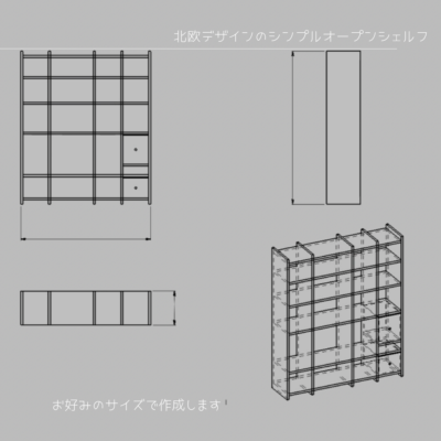 オーダーメイド 職人手作り 本棚 収納棚 キャビネット オープンシェルフ 北欧家具 おうち時間 天然木 木目 無垢材 LR2018 no804