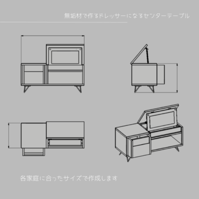 オーダーメイド 職人手作り センターテーブル ドレッサー ローテーブル 化粧鏡 天然木 無垢材 木目 木工 インテリア エコ 家具 北欧 LR2018 no2085