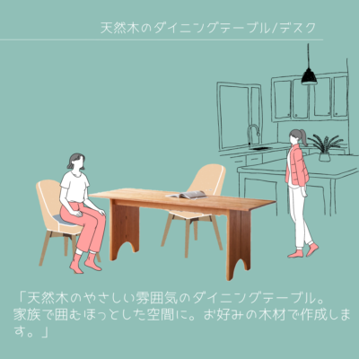 長く付き合っていく物なので拘りを込めて一緒に家具を作って行けたらと考えています。