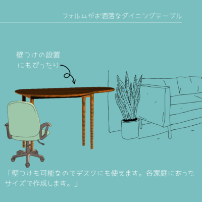 長く付き合っていく物なので拘りを込めて一緒に家具を作って行けたらと考えています。
