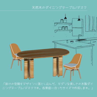 長く付き合っていく物なので拘りを込めて一緒に家具を作って行けたらと考えています。