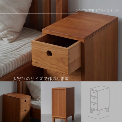 オーダーメイド 職人手作り ベッドサイドテーブル ミニキャビネット 収納棚 天然木 無垢材 木目 木工 インテリア エコ 家具 北欧 LR2018 no2151