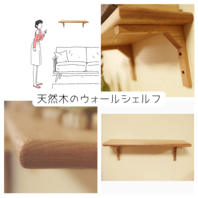 オーク材を使用したハンドメイドの木製ウォールシェルフです。