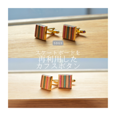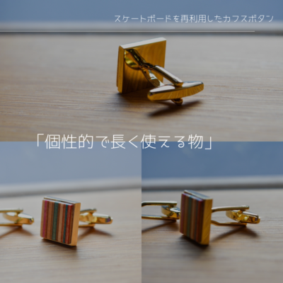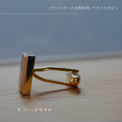 スケートボードを使用したハンドメイドのカフスボタンです。