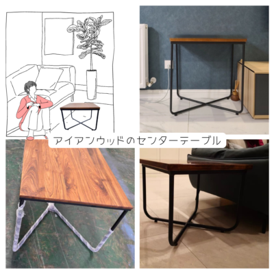 アイアンウッドとパイン材を使用したハンドメイドのセンターテーブル / ソファテーブルです。
