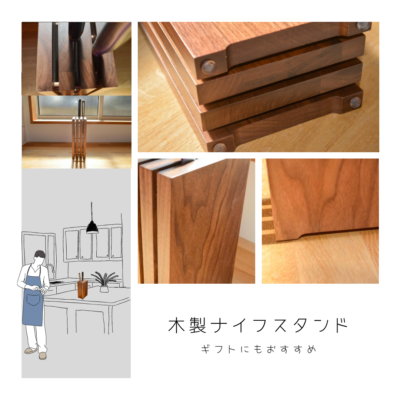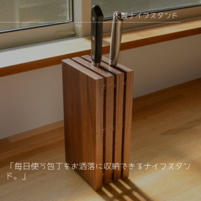 ウォールナット材で作られた、ハンドメイドのナイフホルダーです。