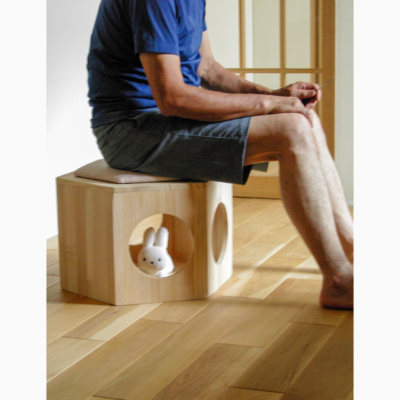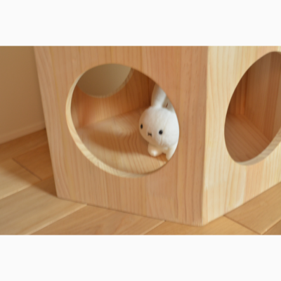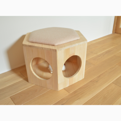 受注生産 職人手作り キャットハウス スツール 猫家具 猫ベッド リビング 無垢材 木工 木目 天然木 おうち時間 エコ LR2018 no1477