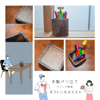 ブナ材 / ウォールナット材を利用したハンドメイドのペンホルダーです。