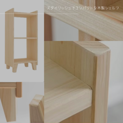 パイン材を使用したハンドメイドのミニシェルフ / 収納棚です。