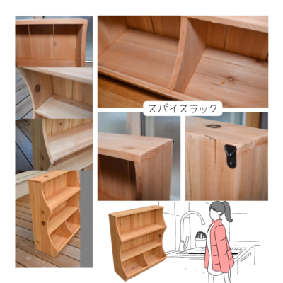 受注生産 職人手作り 収納棚 ミニシェルフ 卓上収納 スパイスラック 木製 キッチン ギフト 天然木 無垢材 インテリア オフィス 木工 家具 収納 LR2018 no1750