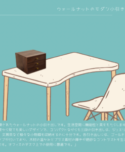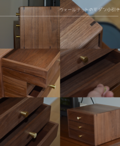 ウォールナットを利用したハンドメイドの小引き出し / 収納棚です。