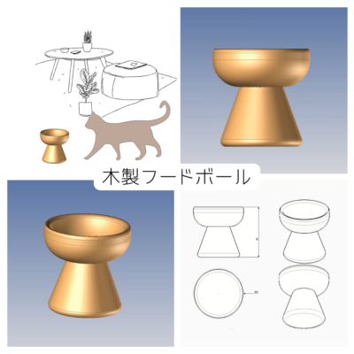 ブナ材を使用したハンドメイドの木製餌入れ / フードボウルです。
