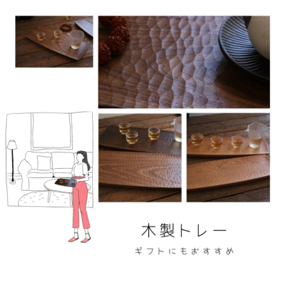 チェリー材 / ウォールナット材を使用したハンドメイドのお盆です。