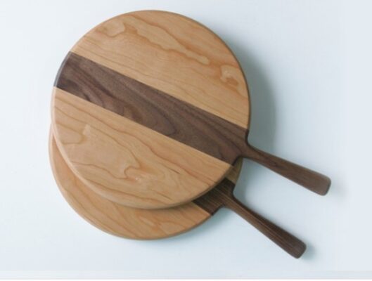 チェリー材/ウォールナット材を利用したハンドメイドのまな板/カッティングボードです。