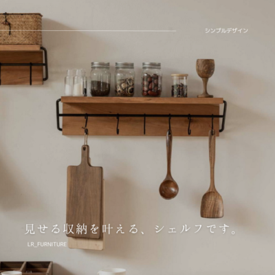 チェリー材 / ウォールナット材を使用したハンドメイドのウォールシェルフです。