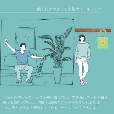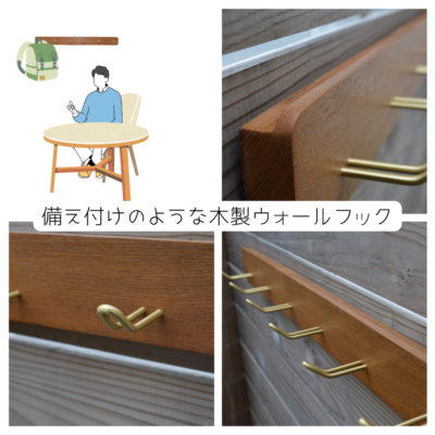 チーク材を使用したハンドメイドのウォールフックです。