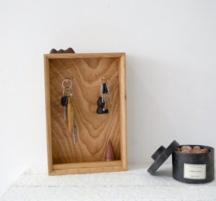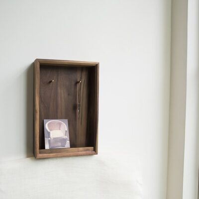 ウォールナット材・タモ材(アッシュ)で作られた、ハンドメイドのウォールラックです。