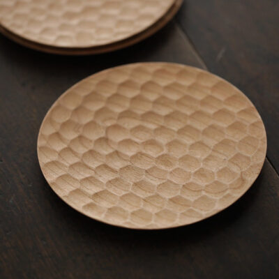 チーク材を使用したハンドメイドのコースター/カップトレーです。