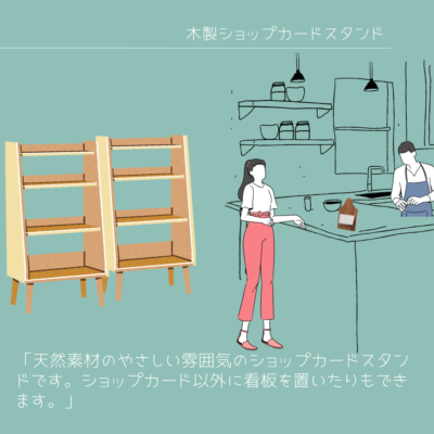 チーク材を使用したハンドメイドのショップカードスタンド / カードスタンドです。
