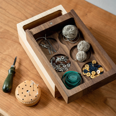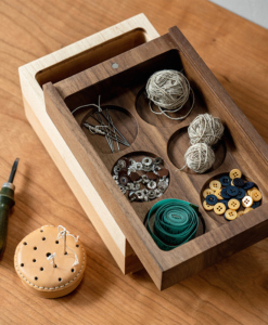 ウォールナット材を使用したハンドメイドのソーイングボックスです。
