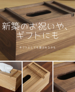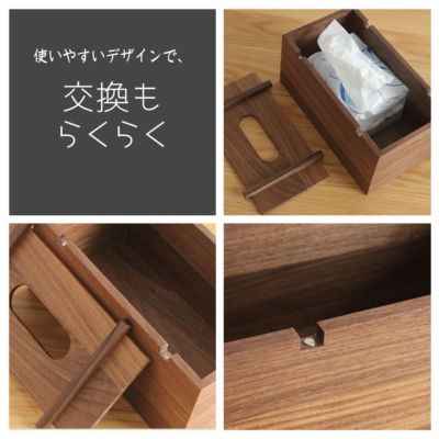 ブナ材 / ウォールナット材を使用したハンドメイドのティッシュカバー/ティッシュケースです。