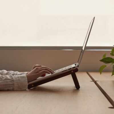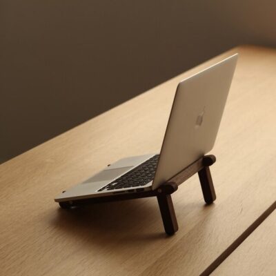 ウォールナット材で作られた、ハンドメイドのノートパソコンスタンドです。