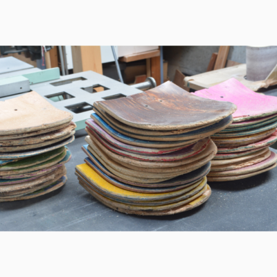 もともとスケートボードの板は突き板の合板なので立派な木材です。
