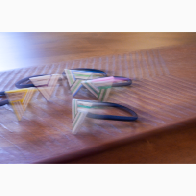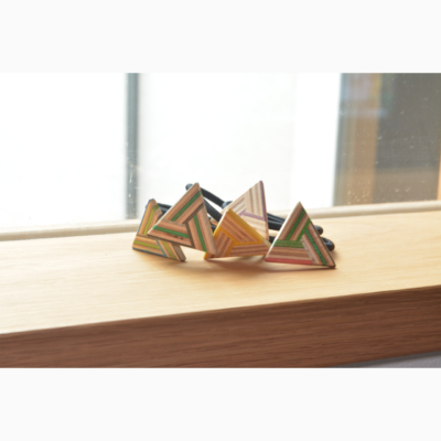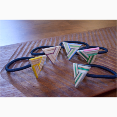 スケートボードを再利用して作成したヘアゴム / 髪飾りです。