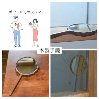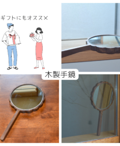 受注生産 職人手作り ミラー メイク鏡 手鏡 インテリア 木製雑貨 ギフト 天然木 無垢材 木目 おうち時間 木工 エコ 家具 LR2018 no1756
