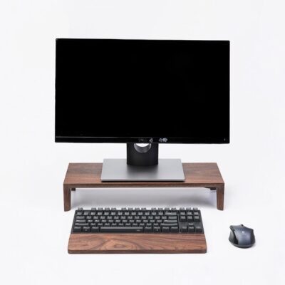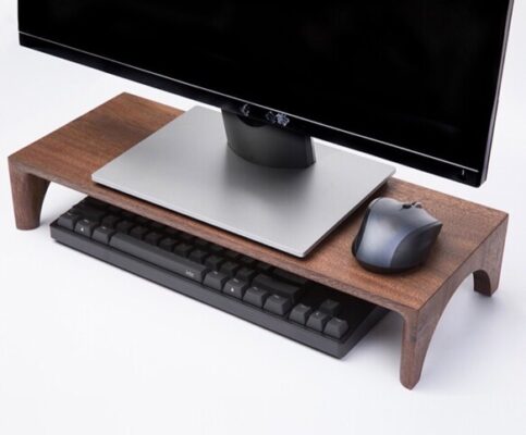 ウォールナット材を利用したハンドメイドのモニターシェルフです。