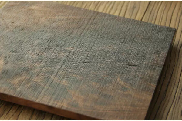 製材直後の木肌は明るい色をしていますが、辺材と心材の境にあるフェノール酸化酵素が空気に 触れることによって、数時間で濃い鮮やかな紫を帯びた暗褐色へと変化します。