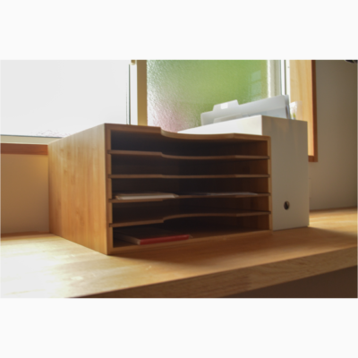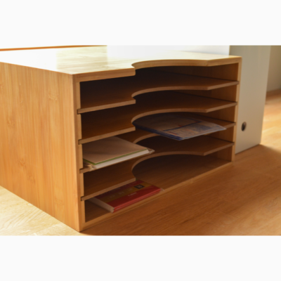 バンブー材(竹)を使用したハンドメイドの卓上小物入れ / レコード収納ボックスです。
