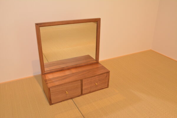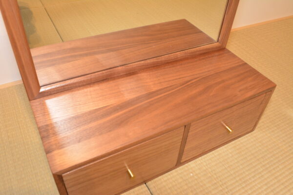 ウォールナット材を使用したハンドメイドの化粧鏡です。