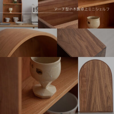 チェリー材 / ウォールナット材を使用したハンドメイドの卓上シェルフです。