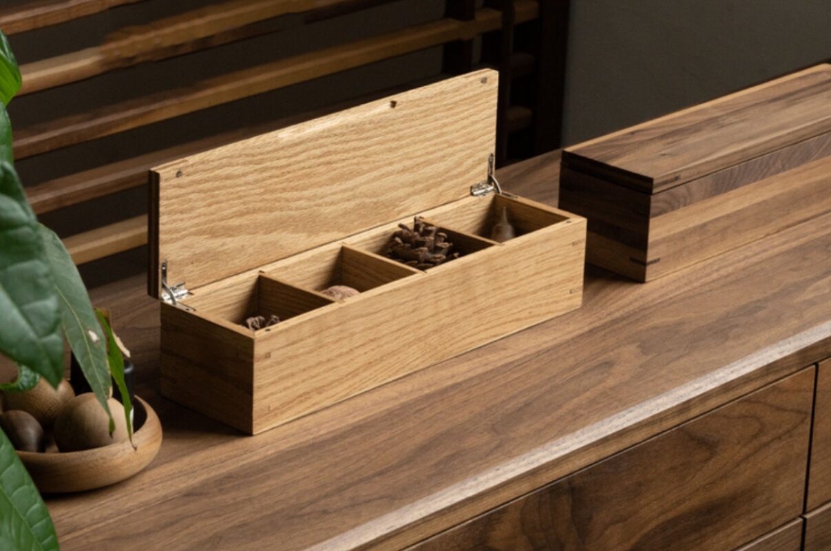 オーク材 ウォールナット材 を使用したハンドメイドの収納ボックスです。