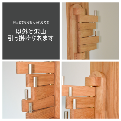 オーク材を使用したハンドメイドのウォールラックです。