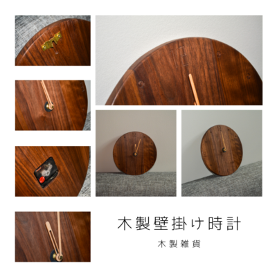 オーク材 / ウォールナット材を使用したハンドメイドの木製時計 / 壁掛け時計です。