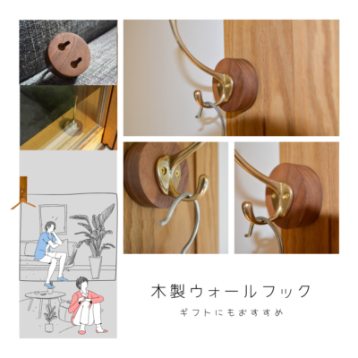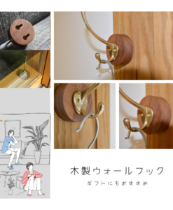 ウォールナット材と真鍮を使用したハンドメイドの壁掛けフックです。