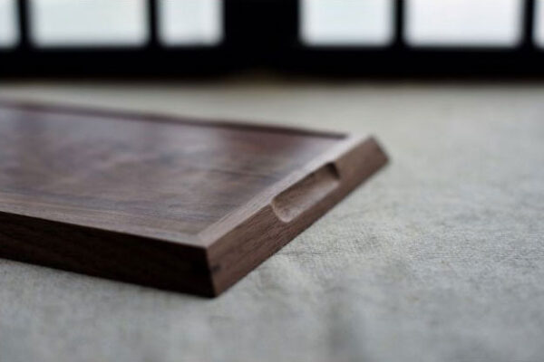 ウォールナットを利用したハンドメイドの木製トレーです。