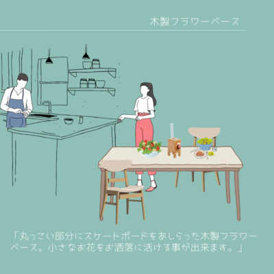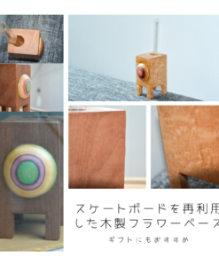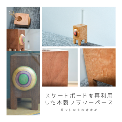 スケートボードとブナ材 / ウォールナット材を使用したハンドメイドのフラワーベース / 一輪挿しです。