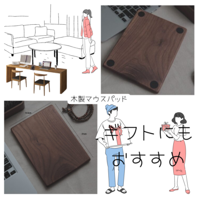 ウォールナット材を使用したハンドメイドの木製マウスパッドです。