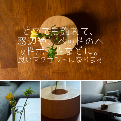 ブナ材 / ウォールナット材を使用したハンドメイドの花瓶/一輪挿しです。