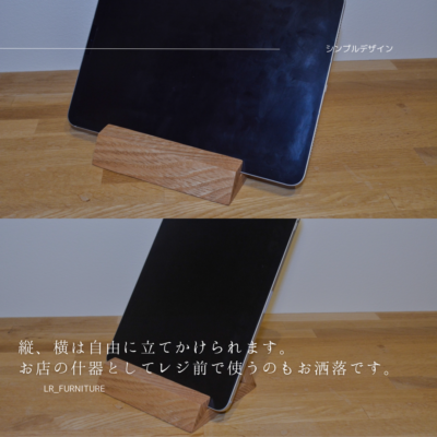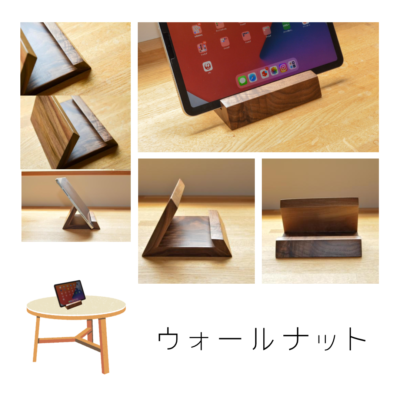 オーク材 / ウォールナット材を使用したハンドメイドのiPadスタンド / タブレッドスタンド です。