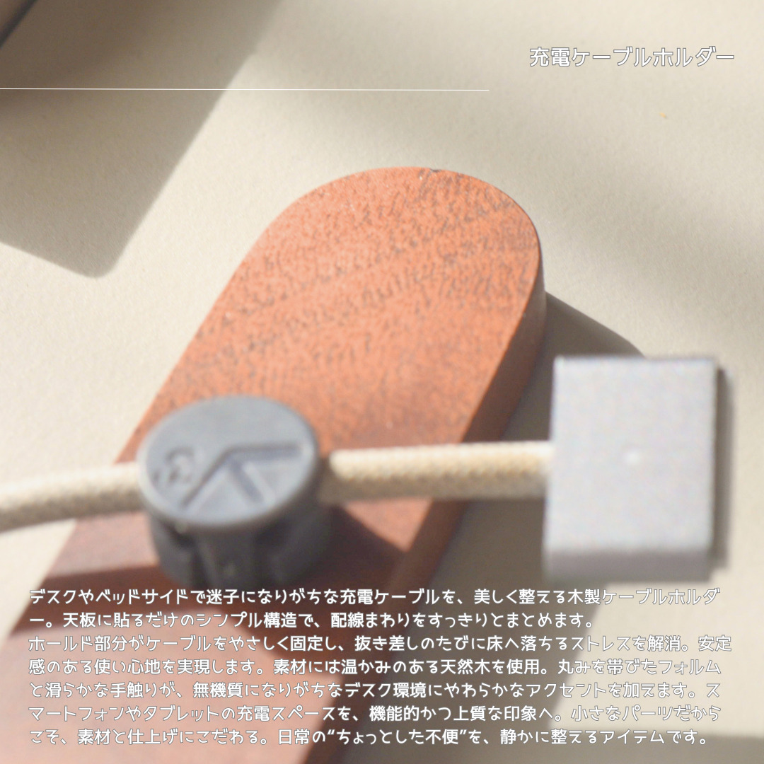 チェリー材 / ウォールナット材を使用したハンドメイドの充電ケーブルホルダーです。