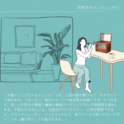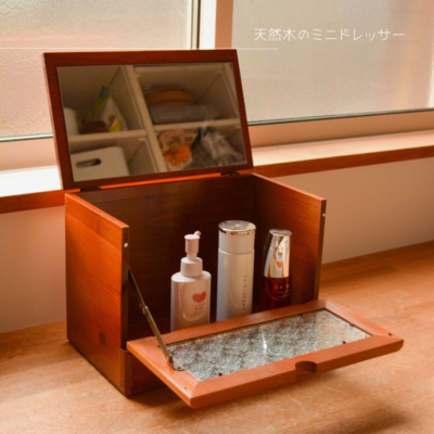 受注生産 職人手作り ミニドレッサー 化城鏡 化粧ミラー メイク収納 卓上収納 木工 木製 インテリア おうち時間 家具 木目 北欧 LR2018 no2320