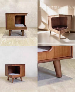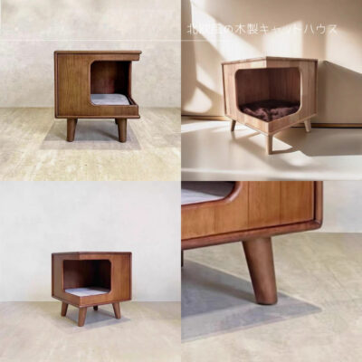 ラバーウッド材を使用したハンドメイドのキャットハウスです。