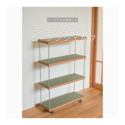リノリウムとMDFを使用したハンドメイドのオープンシェルフです。