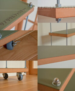 リノリウムの天板は、滑らかな手触りとマットな質感が特徴です。