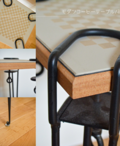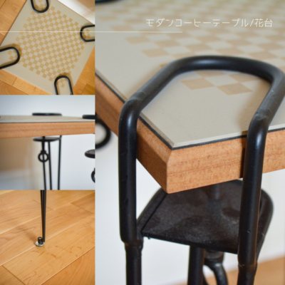 受注生産 職人手作り リノリウム コーヒーテーブル 花台 サイドテーブル 市松格子 木工 雑貨 家具 モダン 木製 北欧 LR2018 no2367
